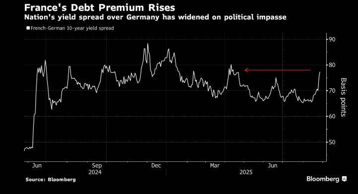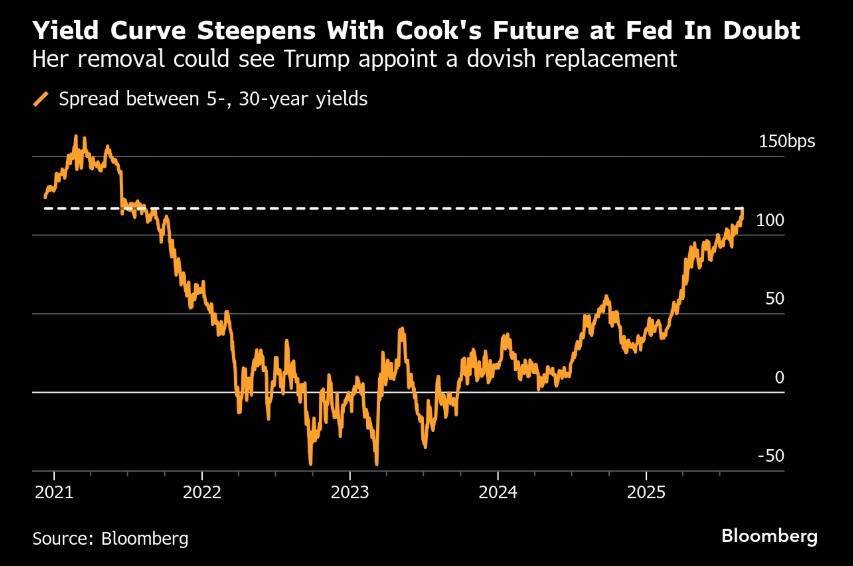 美国总统特朗普着手罢免美联储理事丽莎·库克,导致30年期美国国债收益率升至4.9%;英国同期限国债收益率接近27年来最高水平;日本国债收益率也接近纪录高位。法国总理计划就预算案发起信任投票,该国国债同样遭遇抛售。