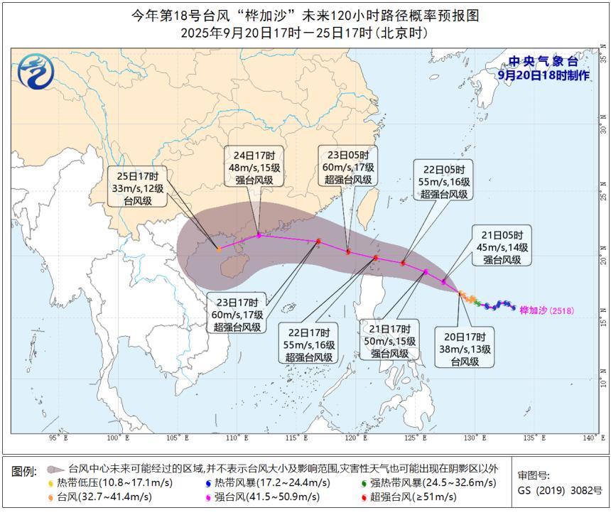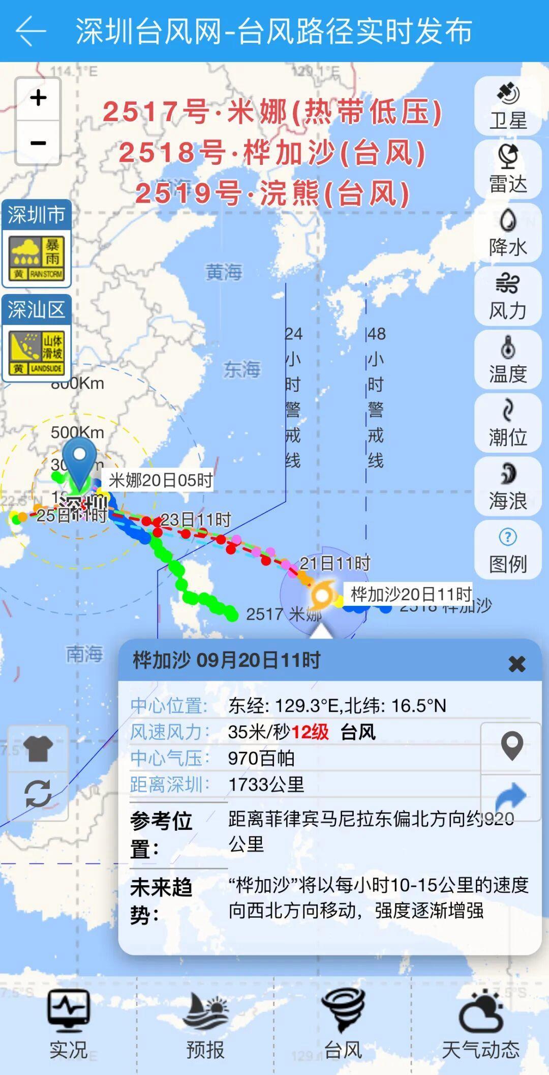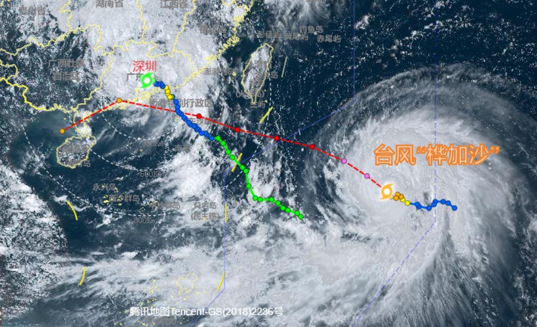 据深圳天气,“桦加沙”14时中心位于深圳东南方向约1700公里的西北太平洋洋面上,预计将以15公里左右的时速向西北方向移动,22日夜间穿过巴士海峡进入南海海域,强度可达超强台风级(16~17级)。