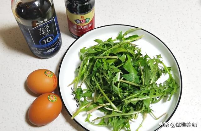 准备食材:蒲公英、鸡蛋3个、食盐、食用油
